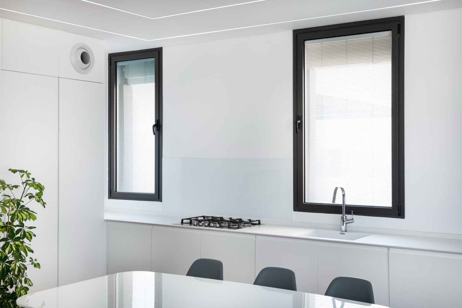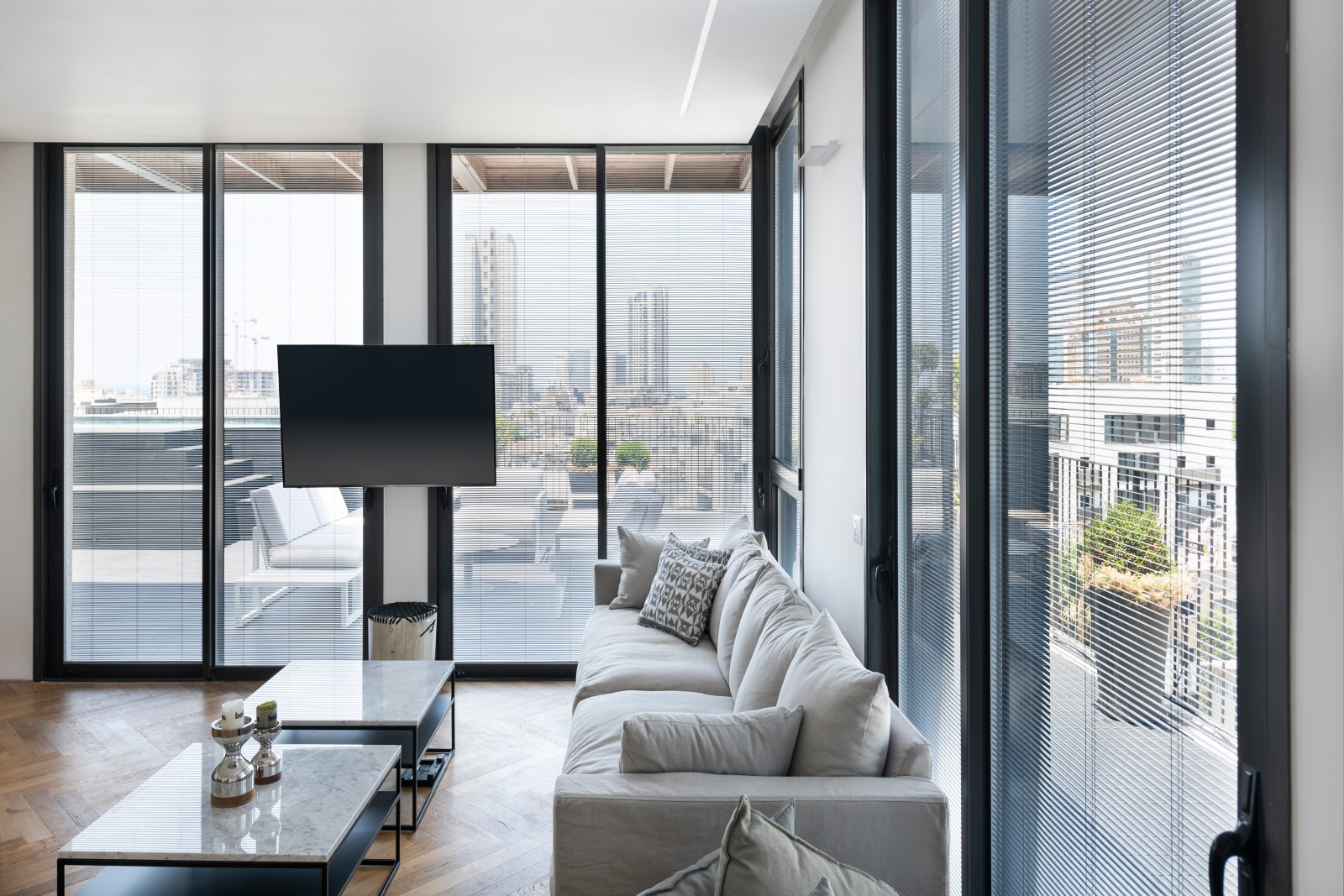 The combination of an urban, up-to-date and prestigious living experience required us to implement advanced functional systems such as the AW45 dry kip "Dolev" model, an AW92 sliding system for 400/275 cm large openings combined with an electrically operated Venetian shade between double-glazing. The entrances of the buildings were designed with elegant All Glass systems with maximum functionality and tin cladding.